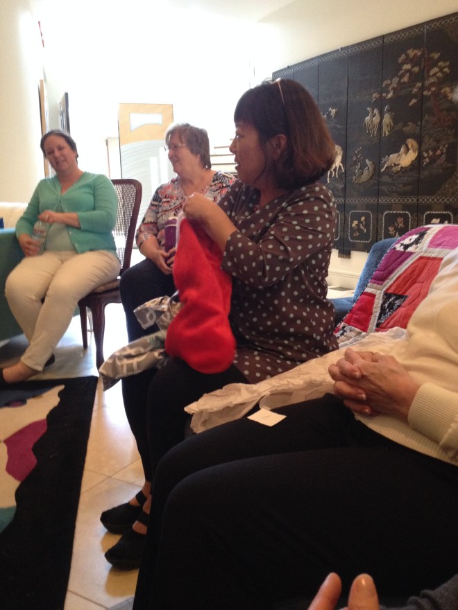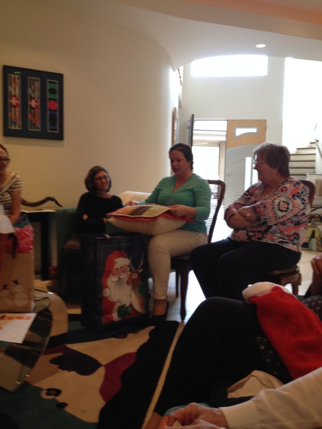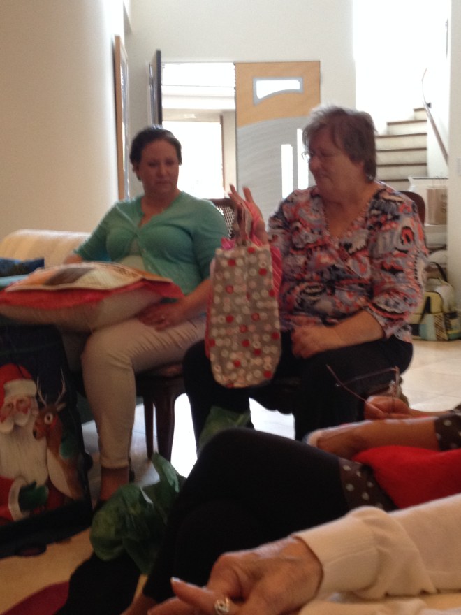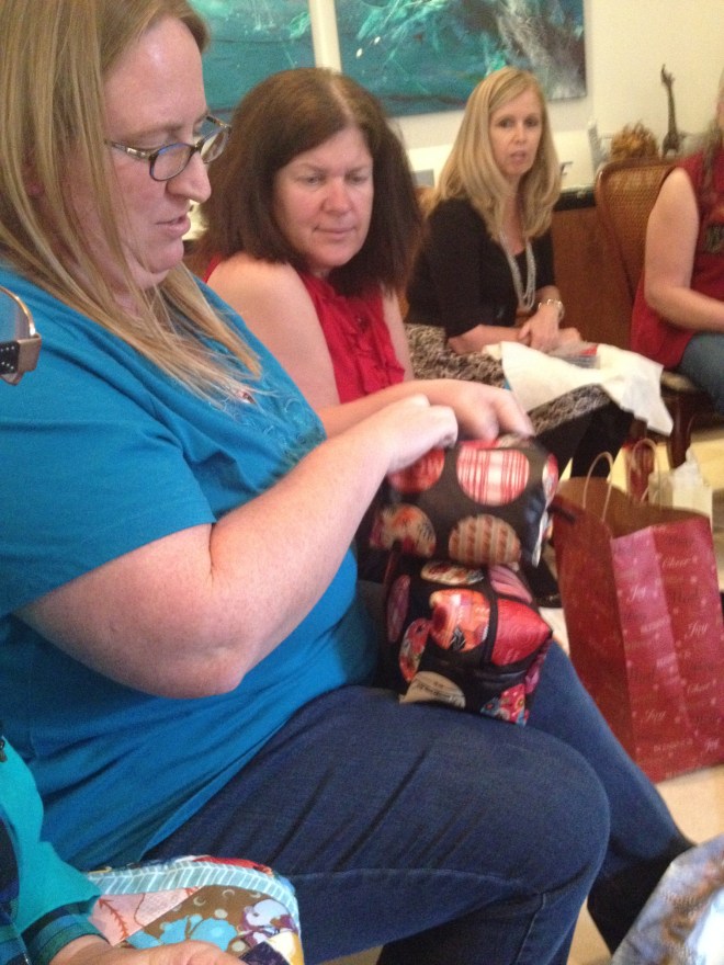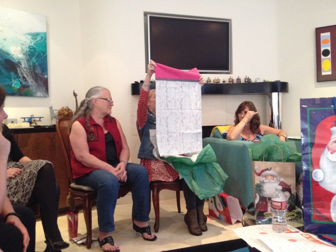 This year’s holiday party was hosted at Bunnie’s home. Each year at the holiday party, we take time to sew a quilt together which will be donated to charity. We also had a Yankee Swap of handmade items. The handmade items included mini quilts, bags, aprons, and more! Our holiday parties are always fun opportunities to get to know fellow guild members better while celebrating the joy of the season. Here are pics from this year’s amazing party!
