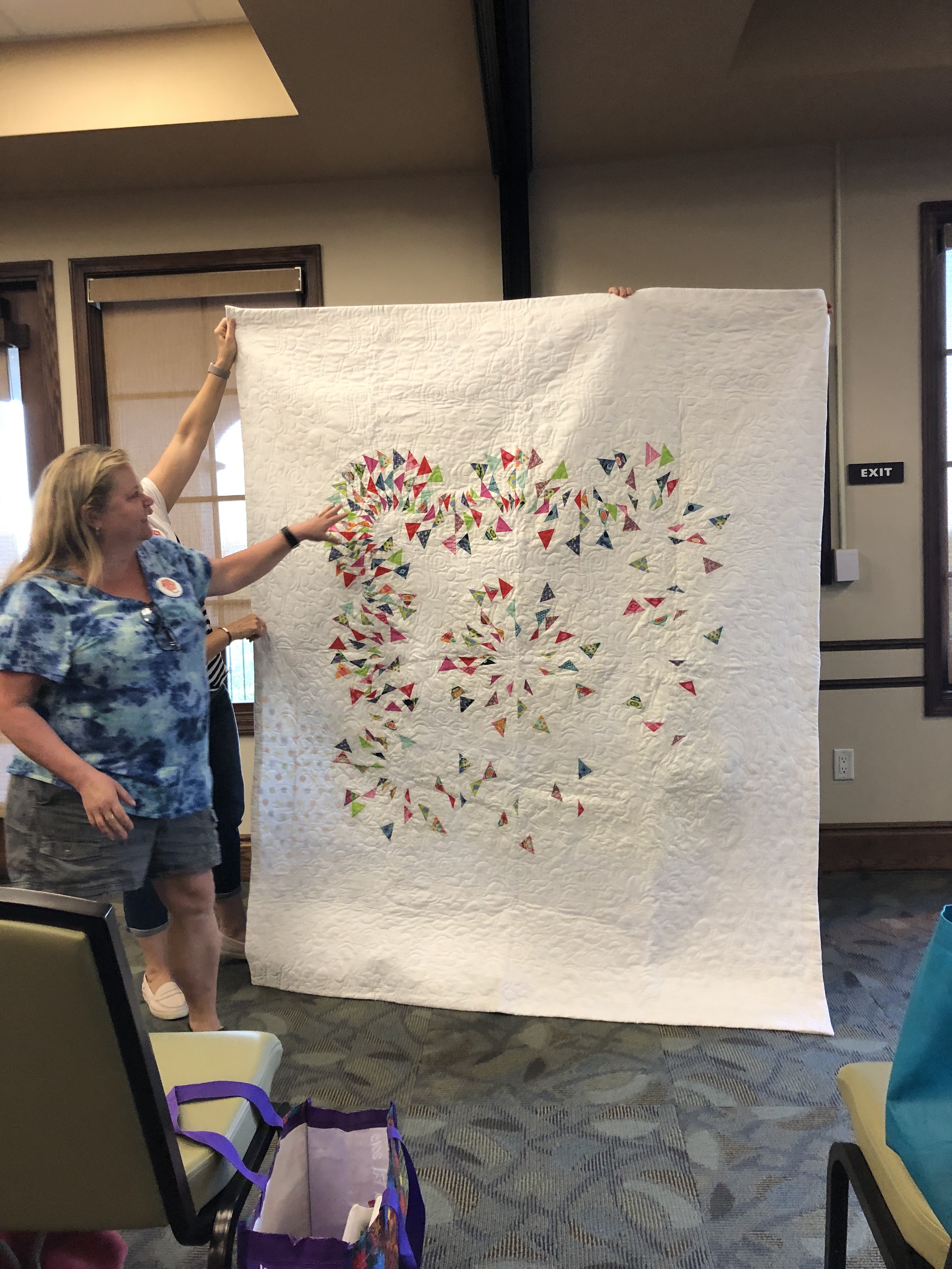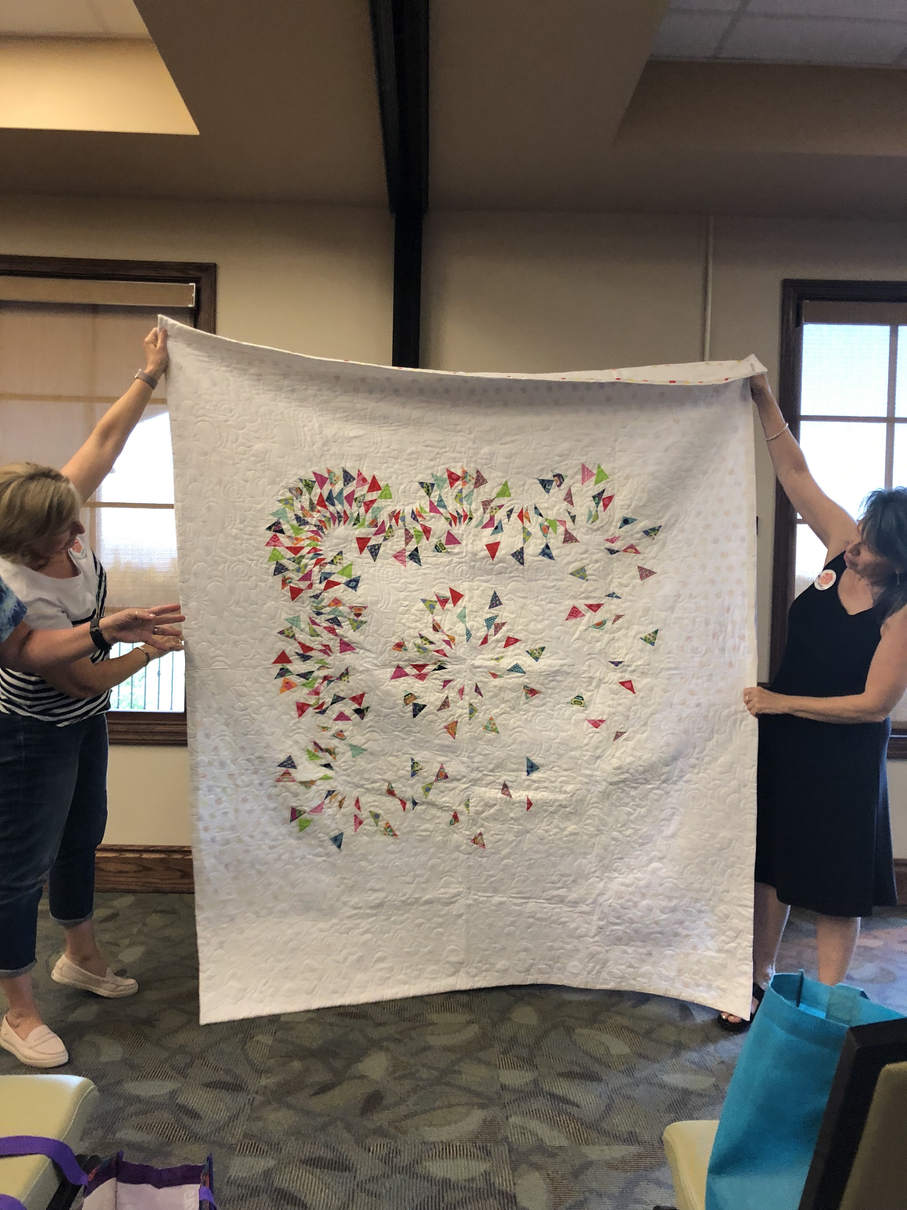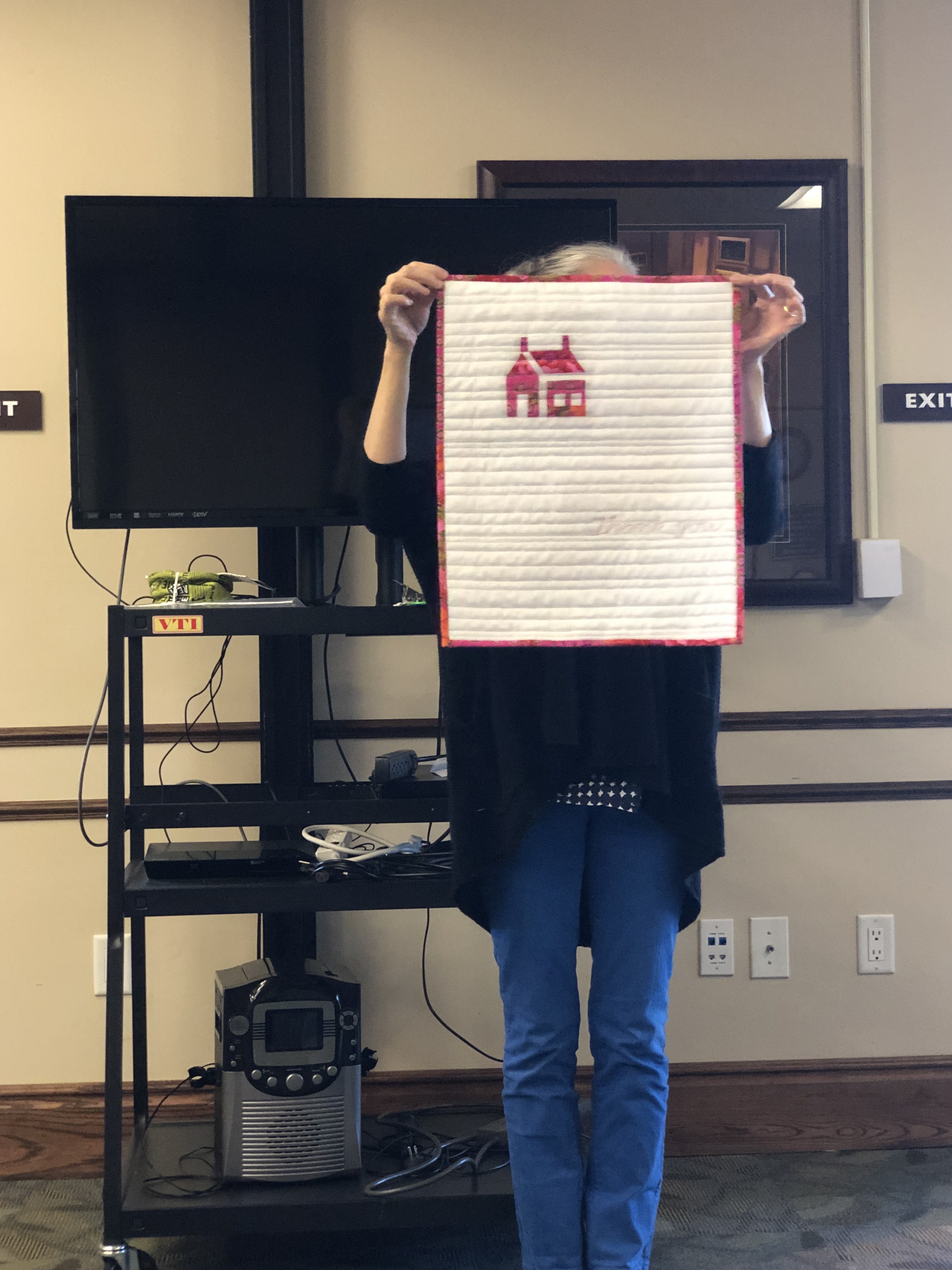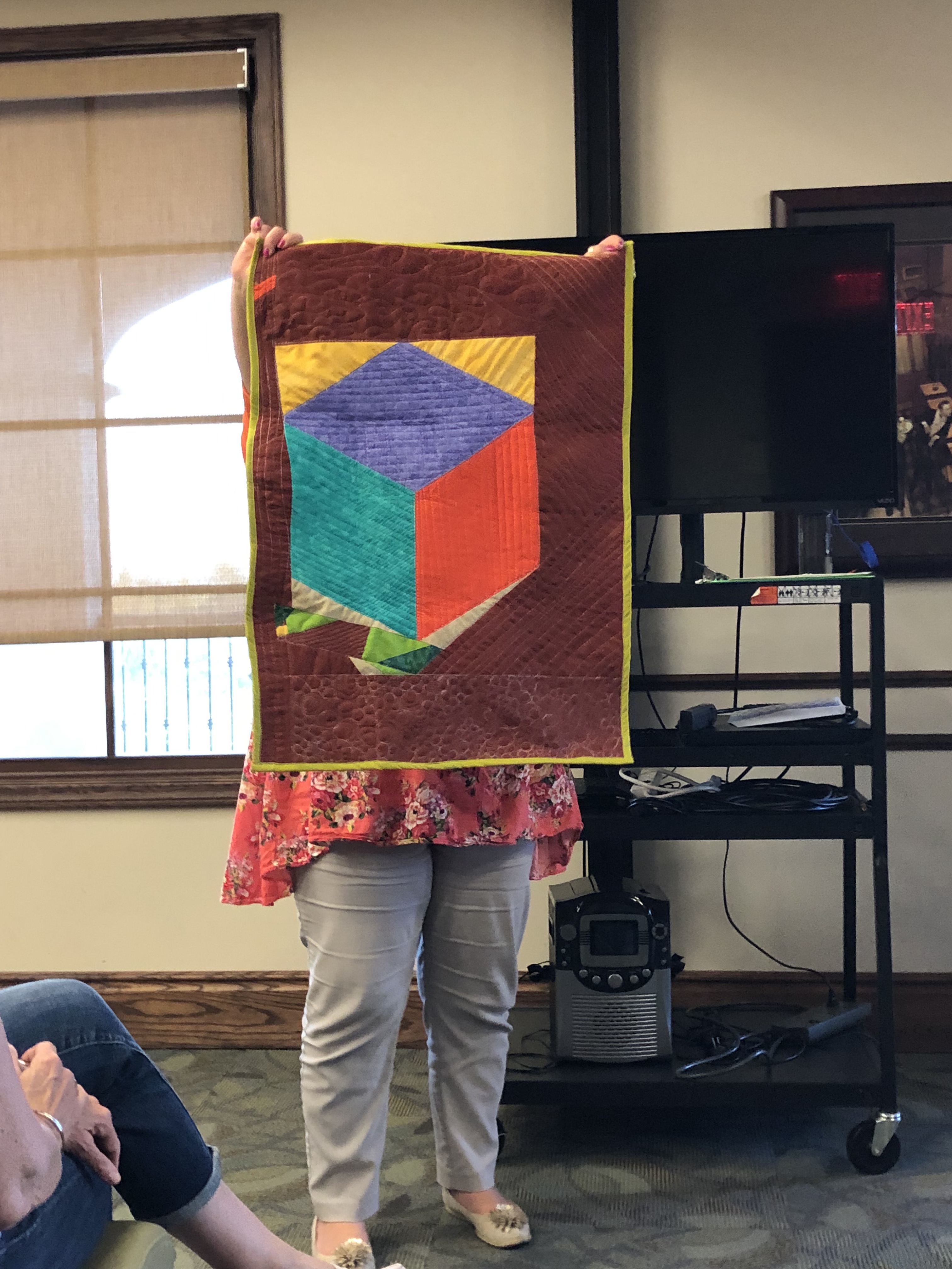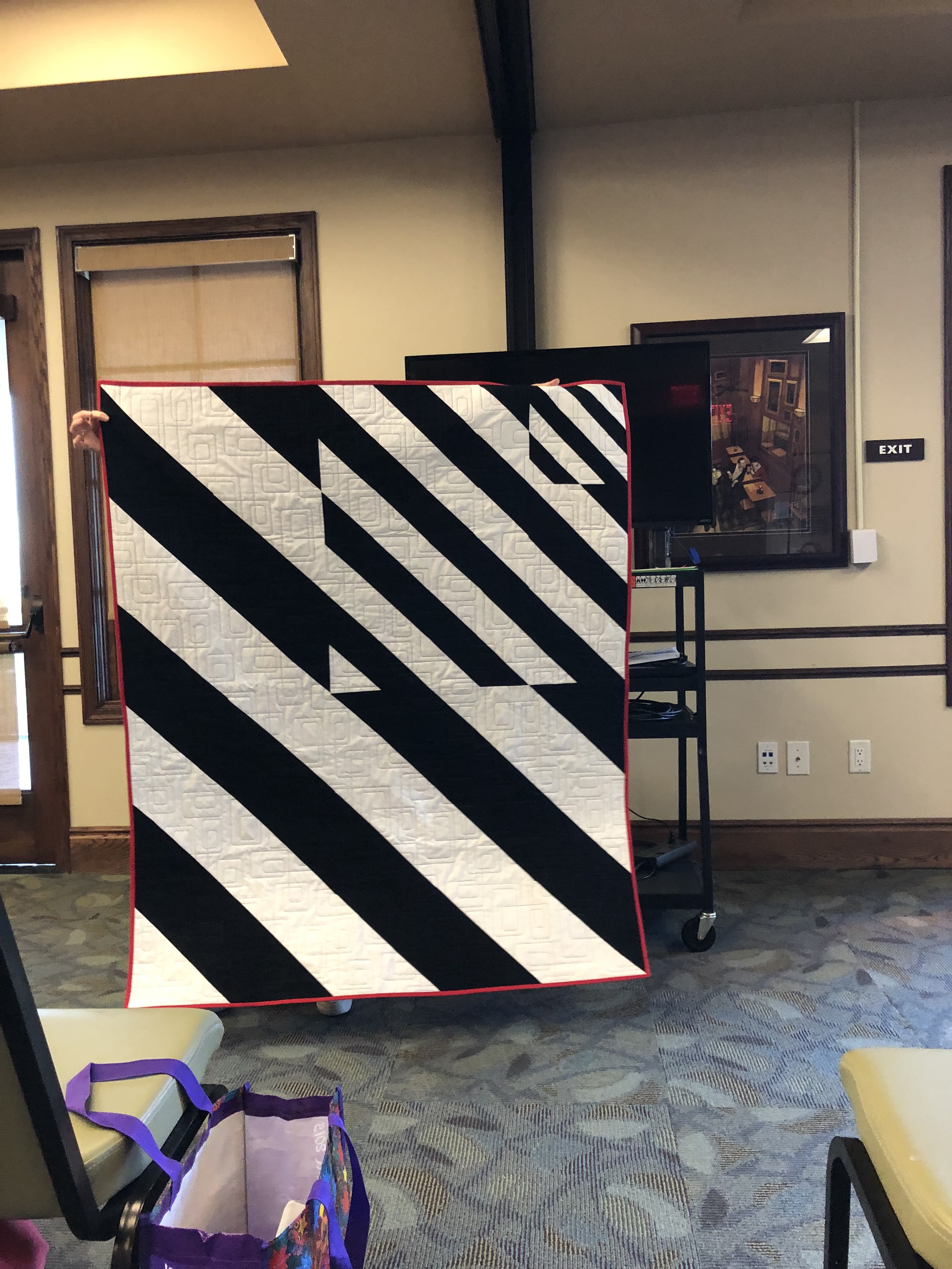 Our April Challenge this year was to create a quilt using modern minimalism. Quilts had to be 12″ x 12″ or larger. Prizes were awarded for the following categories; best use minimalism, best modern design, and members’ choice.