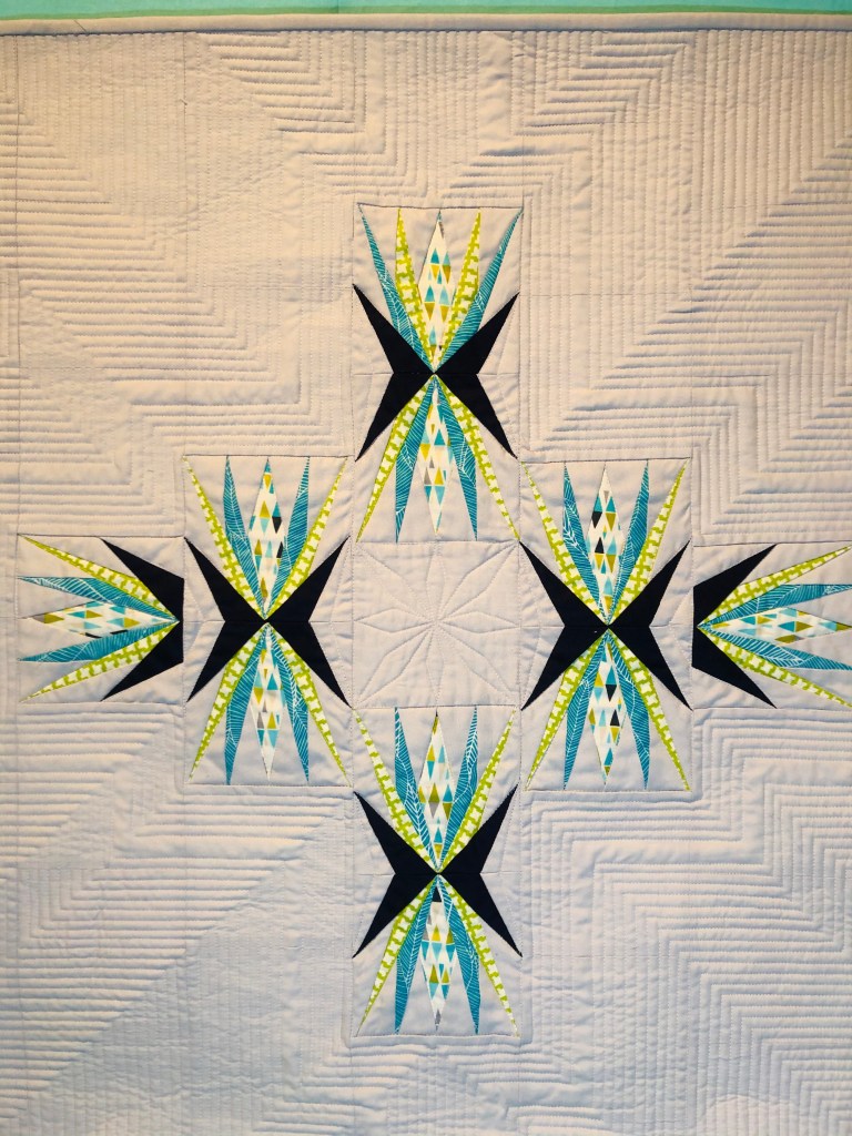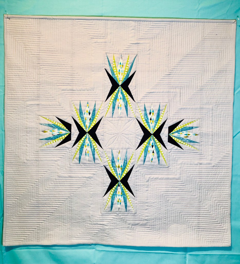 About the Quilt: 28 X 28 wall hanging that was foundation paper pieced. Most quilting lines are 1/4” apart.