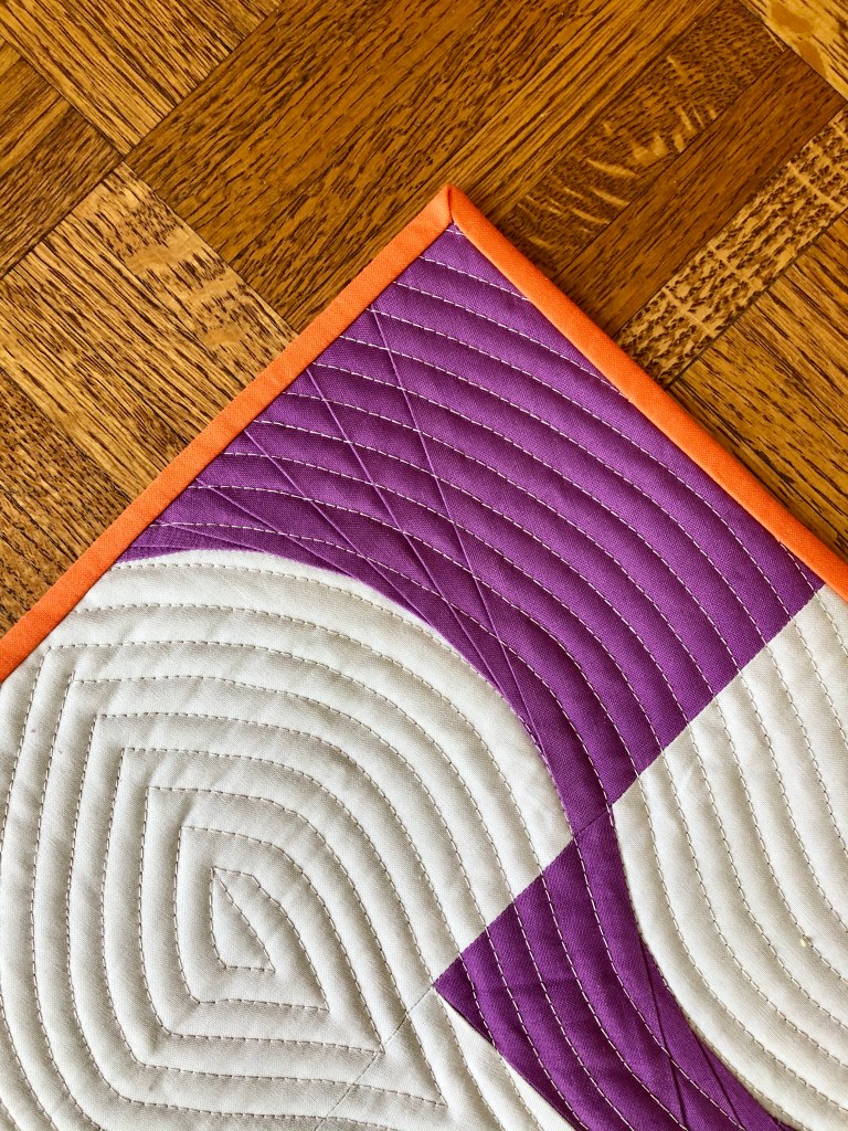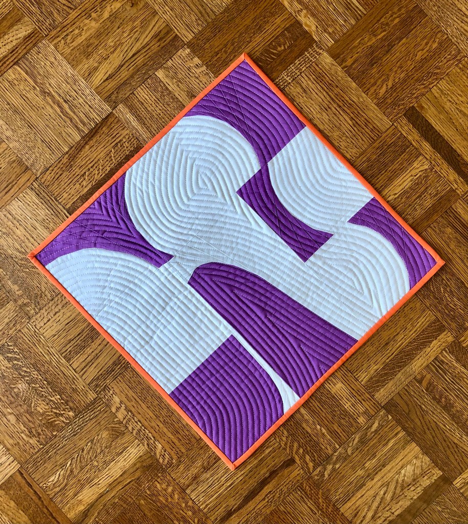 About the Quilt: This is my improv paper pieced curves mini-quilt from the Amy Friend workshop.