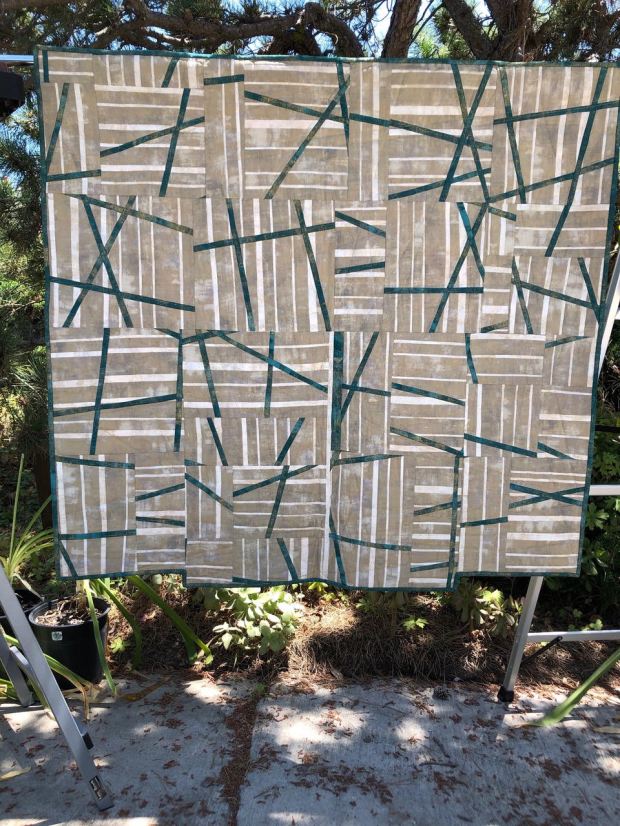 How Alternative Grid Work is used: It started out following an approach for ‘planned improv’ from Carole Lyle Shaw but wasn’t creating the right look, so it went experimental from there. Blocks ere of variying sizes and shapes to create the non-grid layout.