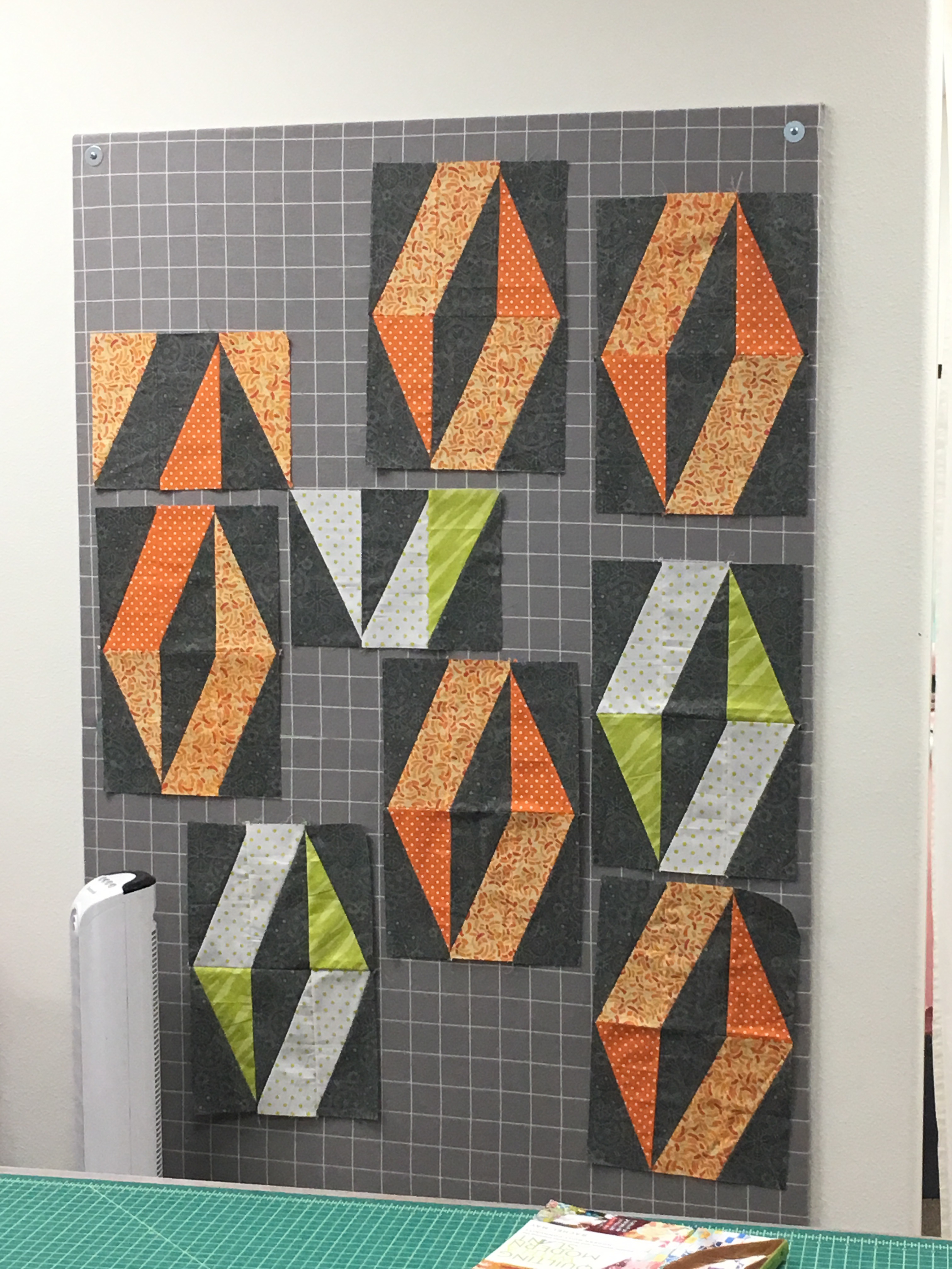 In order for the 3D illusion to persist throughout the quilt, each participant must arrange the light, dark, and mid-tone diamonds in the same placement!