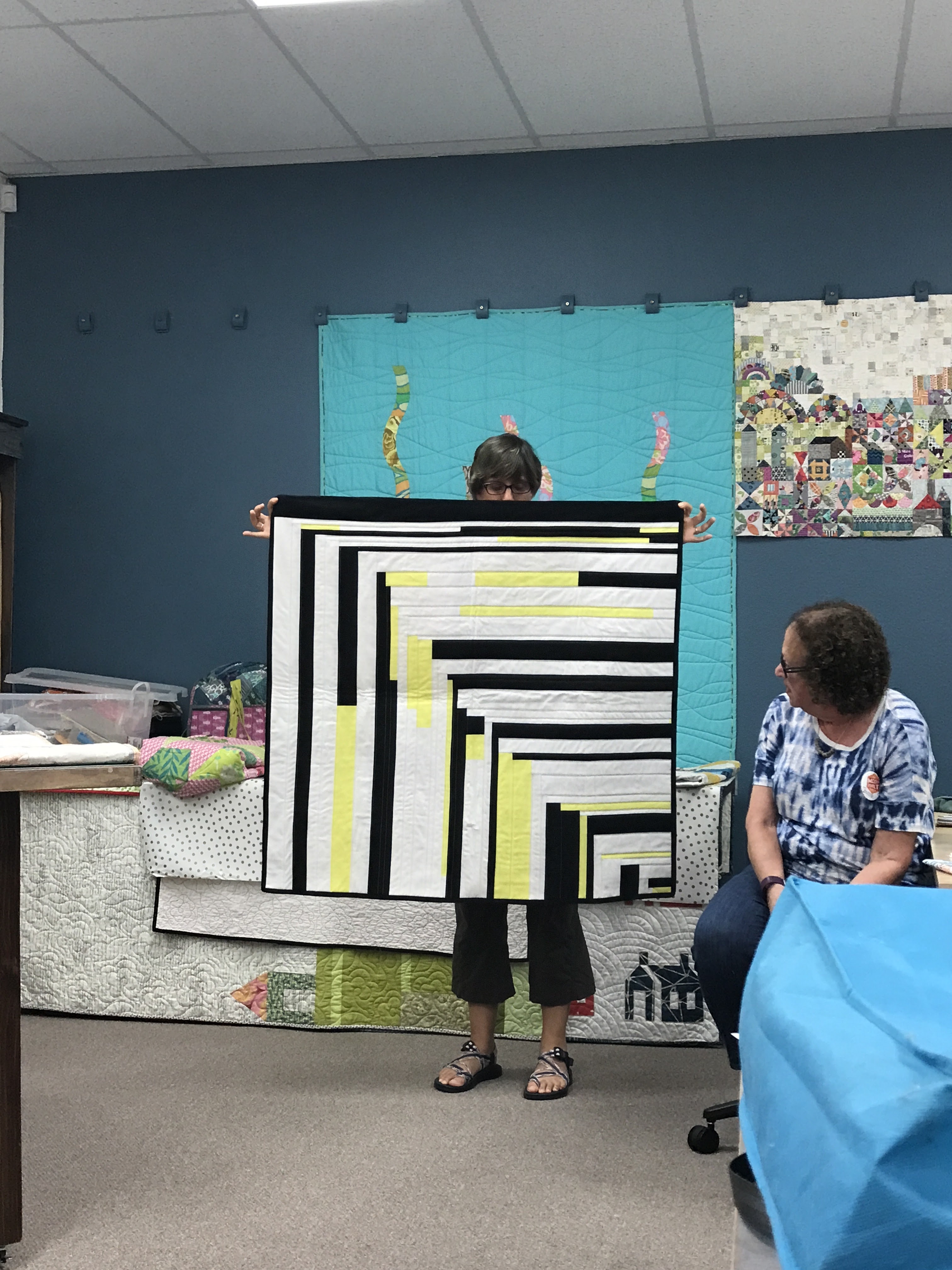 Our April Challenge this year was to create a quilt using modern minimalism. Quilts had to be 12″ x 12″ or larger. Prizes were awarded for the following categories; best use minimalism, best modern design, and members’ choice.